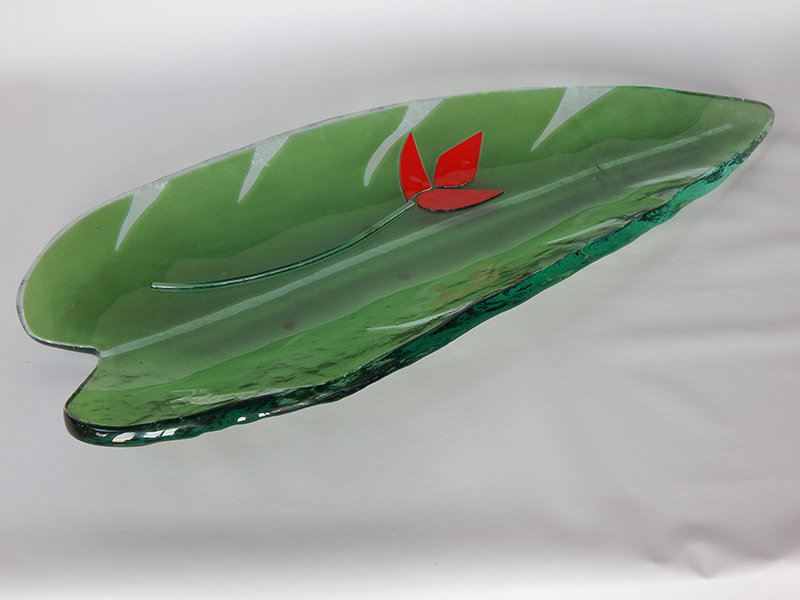 Centro de mesa helicônia, construído com vidro reciclado 18mm.