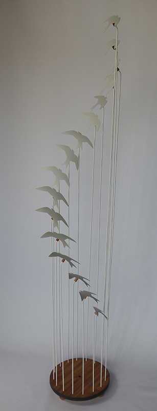 Feito em madeira, arame de aço e PVC.